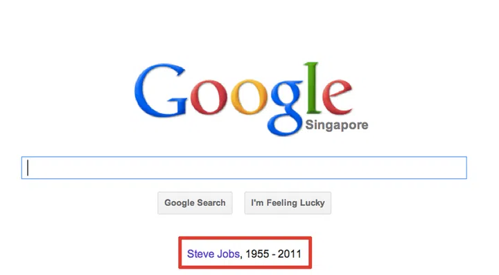 In a mark of respect, Google pays tribute to Apple ex-CEO Steve Jobs with a link on its main page, pointing to Apple's website.