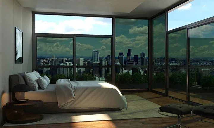 Self-tinting glass has benefits beyond privacy and aesthetics. A bright interior, for example, reduces the need to turn on lighting. When it gets hot, tinting glass blocks solar heat, reducing strain on air-conditioning.