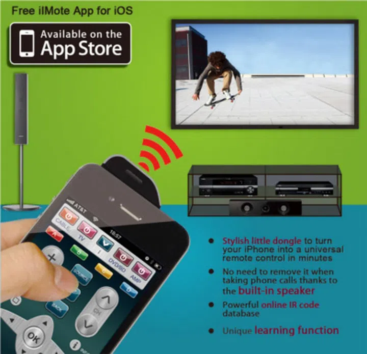 This accessory comes with a free app that will turn any iPhone or iPad or iPod touch into a universal remote control.