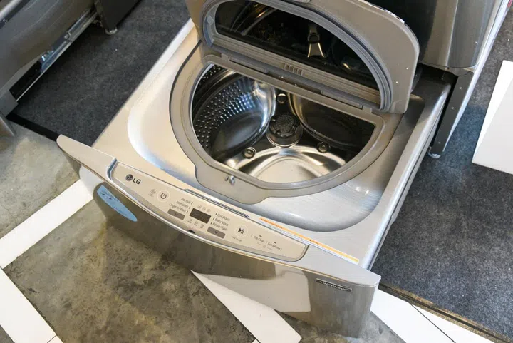 The TwinWash washing machines were first introduced in 2015. They combine two washing machines into one; a larger main washer on top, and a mini washer on the bottom. This allows users to wash either two loads at once, or one at a time. It can be useful if you want to separate your white fabrics from colored clothes, for example, or if you want to wash some dirty clothes right away without waiting for a full load.