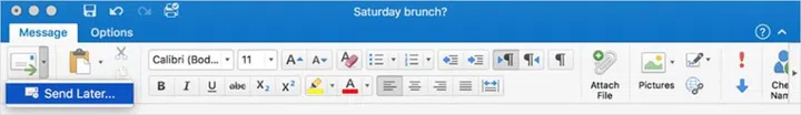 Send Later - This is easy to understand: you can now write an email and schedule it to be sent automatically at a later time. This feature is now available to Office Insider Fast users with on version 15.36 (170606); Office 365 subscribers will get it in July on version 15.35 (170610).