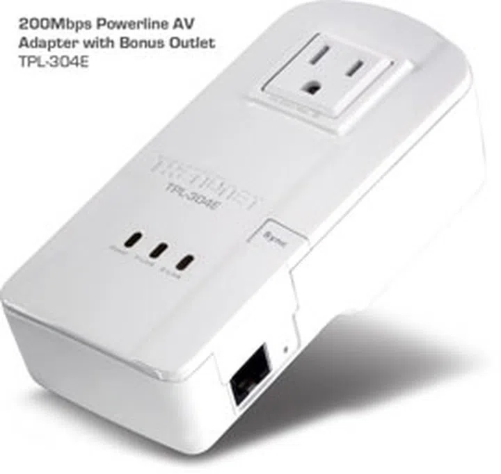 Trendnet announces the availability of the 200Mbps Powerline AV Adapter with Bonus Outlet, model TPL-304E, and the 200Mbps Powerline AV Adapter with Bonus Outlet Kit.