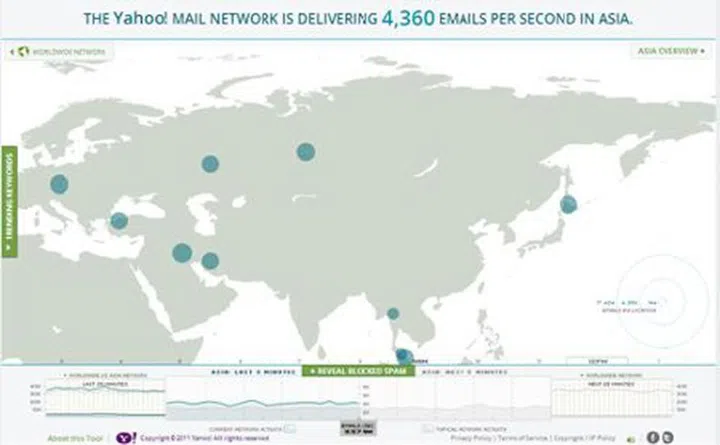We think the technology we’re using to keep your mailboxes safe is quite awesome and we wanted to show you how we do it, so today we’re going live with the Yahoo! Mail Visualization Project – a view of what no one has seen before using live data…how we use cloud computing and Apache Hadoop technology to filter spam and re-route email for the 300 million mail users we have across the globe.