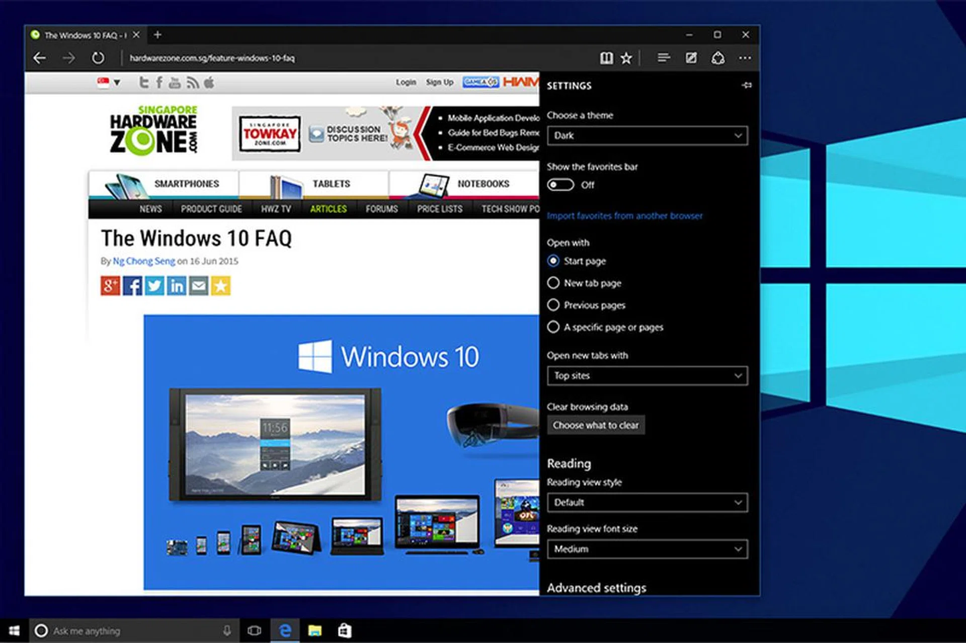 And for good reasons too. The new Edge browser (codenamed Spartan before this) supports the EdgeHTML rendering engine, and is optimized for modern websites and standards. It also has fancy but nonetheless useful features, like a note-taking mode whereby the webpage is frozen to let you comment or draw on it directly, along with the ability for you to save it to OneNote or share with others. It also gains a Reading Mode for distraction-free reading, a Reading List that supports offline reading and which syncs across devices, Cortana intelligent personal assistant integration, and many more. All these are features that IE11 can only look on with envy.