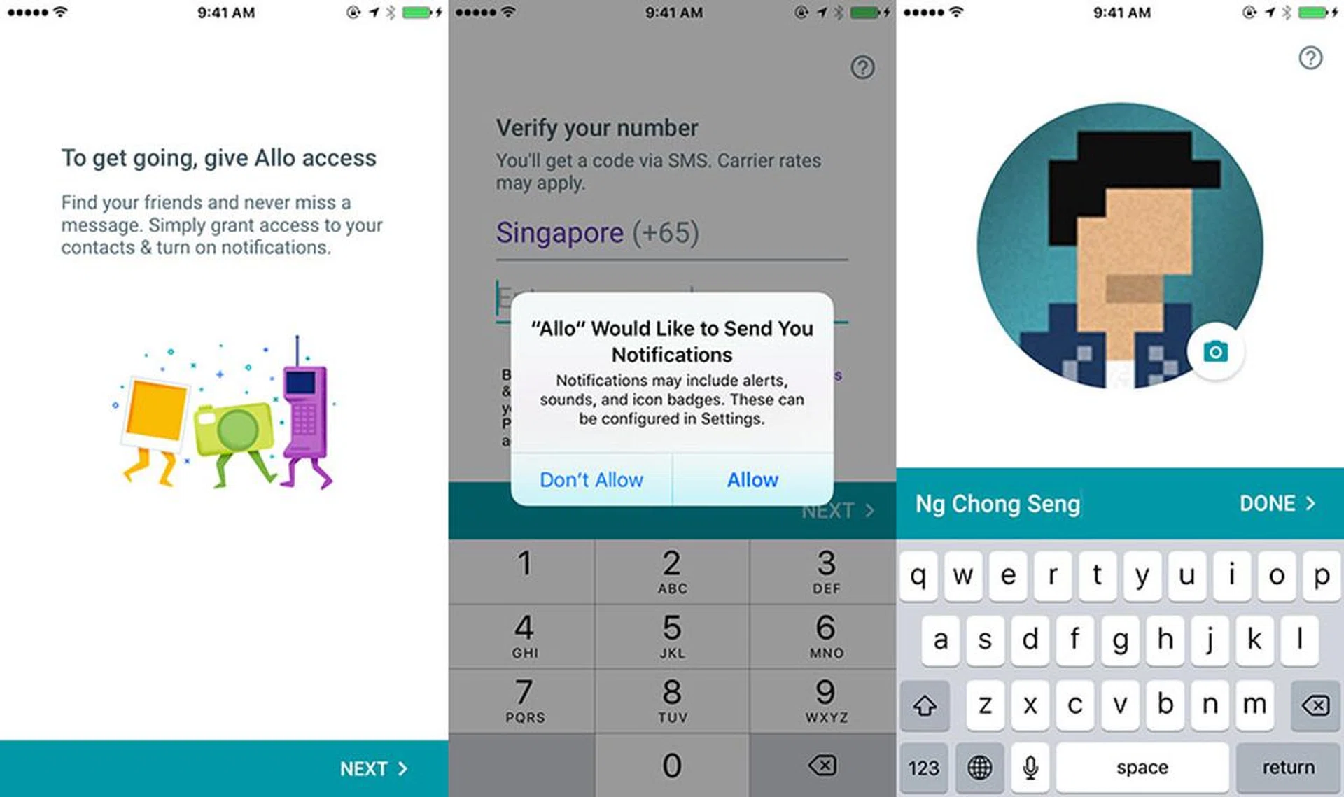 As such, the Allo interface is very straightforward and easy to understand from the get go. Like most modern chat apps, it uses a phone number-based system. Yes, you can still sign in with your Google account, but that’s not compulsory. (I do recommend it though if you use Google’s services; for one, that will allow the Google Assistant to use your search history when it’s making suggestions. I already had Hangouts installed on my iPhone, so this happened automatically.) Allo will also ask for permissions to send you notifications, as well as access to your contacts, camera, photo gallery, and location data - pretty par for the course for IM apps these days.