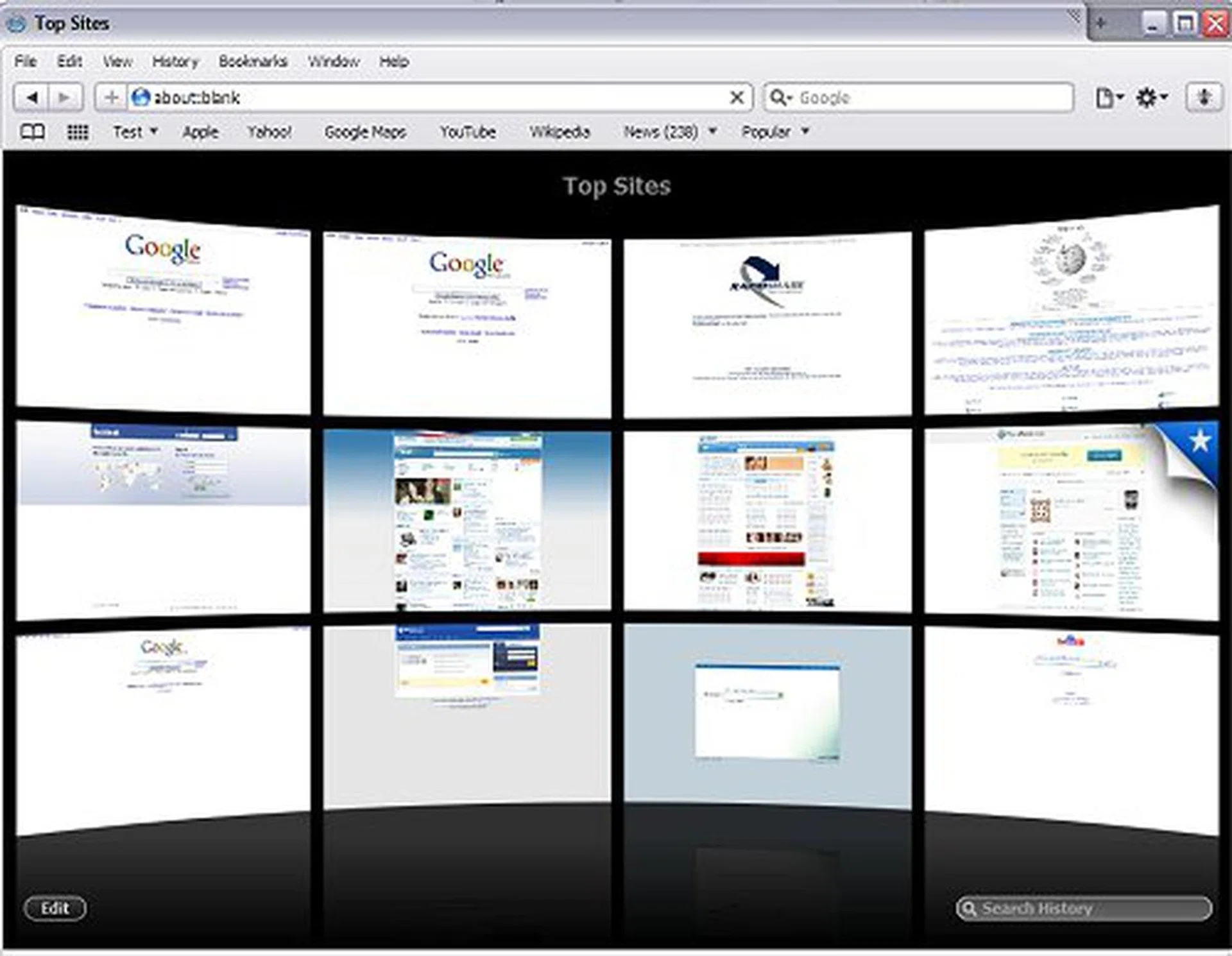 Cover Flow - Browse through your history or bookmarks with Cover Flow like how you would view stuff in OSX or your music in iTunes. Sure it's flashy, but it's a flashy way of doing things.