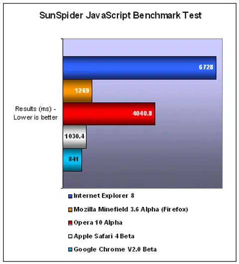 For our browser wars showdown, we decided to go with the latest version of each available browser. This means we'll be using the beta versions of the browsers or the live version if there no available betas to test. For this article, we'll be looking at the five most popular browsers in the market:- IE8, Firefox (Minefield), Opera 10 Aplha, Safari 4 Beta and Chrome 2.0 Beta.