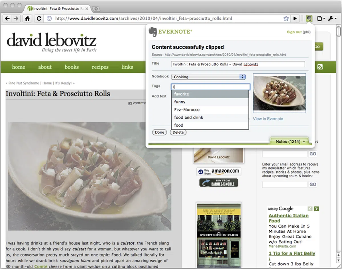 If you have signed up for an Evernote account, the Clip to Evernote extension is a handy addition (think of Evernote as a digital scrapbook service of sorts). The Clip to Evernote Chrome extension makes it easy to create quick Evernote notes; you can organize your favorite text or images easily into your Evernote account with a single click. Or, if you have nothing to add on, you can also access the extension to check out old notes.  | |
