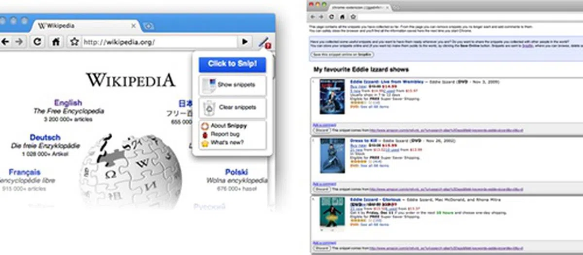 The good thing about the Snippy extension is not only that it allows you to capture and consolidate images and bits off websites for both easy retrieval and referencing, but also allows you to easily upload them to Google Docs. Snippy allows you to grab snippets of web pages, save them for future use and easily upload them to Google Docs.  | |