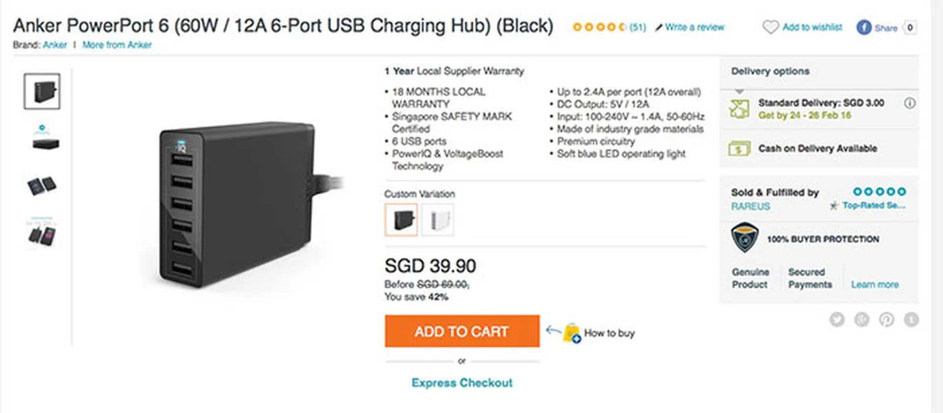 If you are a notebook user and you find yourself always running short of USB ports to charge your numerous mobile devices, you might want to invest in a USB hub from Anker. The brand is something of a USB hub specialist and the PowerPort 6 is a favorite amongst many notebook users. Each port offers up to 12W and 2.4A of juice, so it can charge iPads speedily. Note, however, that if all six ports are in used, each port will offer a maximum of 10W. That's still more than sufficient to charge all mobile devices. Best of all, the Anker PowerPort 6 is available now for S$39.90 from Lazada.