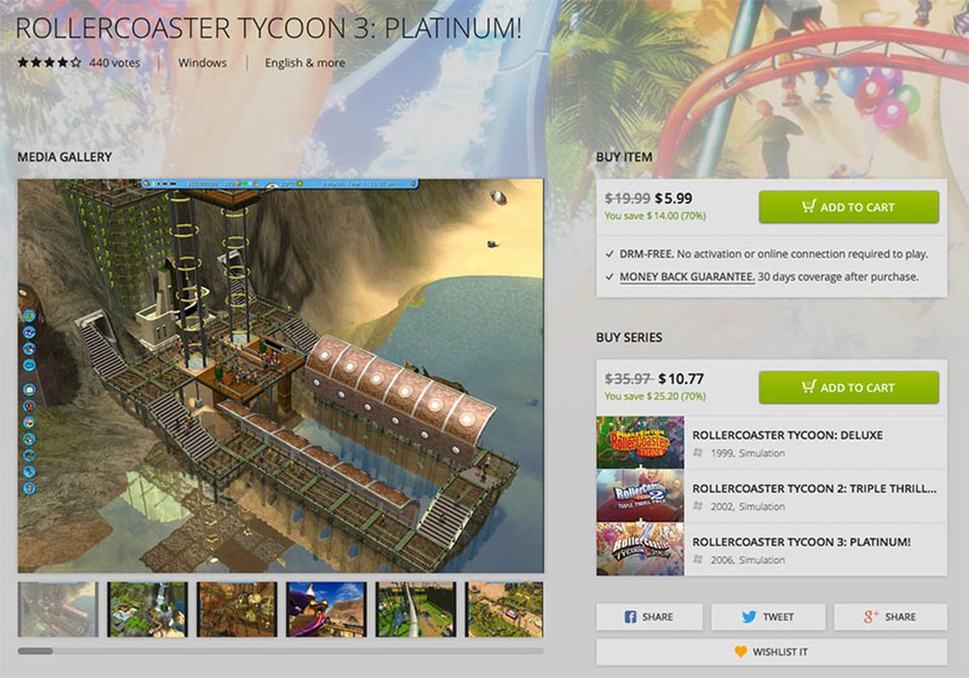 If you are in the building type of mood, we got good news for you. With the new Rollercoaster Tycoon World game set to be released some time soon, we thought that it would be a good time to take a trip down memory lane with Rollercoaster Tycoon 3, the last game made in the very popular Rollercoaster Tycoon series. Not only that, it was also the only one that was done in 3D. The game is available on GOG.com at 70% off for just US$5.99.