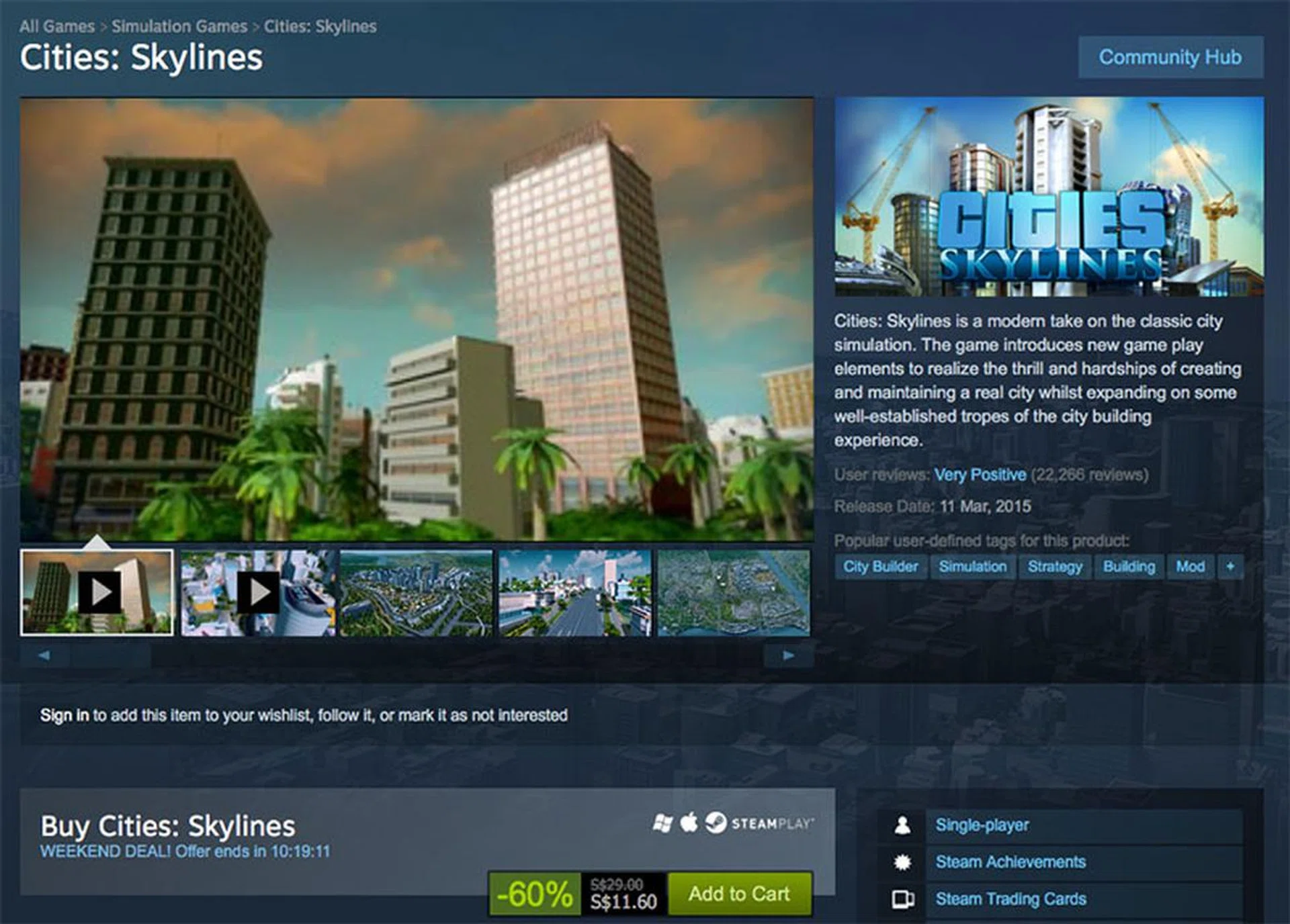 Cities: Skylines was released to rave reviews last year and is generally considered the best city simulator right now. There’s also a very vibrant modding community for the game, which adds to its replay value and fun factor. Recently, developers Colossal Order released a new expansion for the game called Snowfall, which adds snow and other winter-themed elements. Rather fortuitously, Cities: Skylines is being offered on Steam at a pretty massive 60% discount right now, which means you can get the game for just S$11.60.