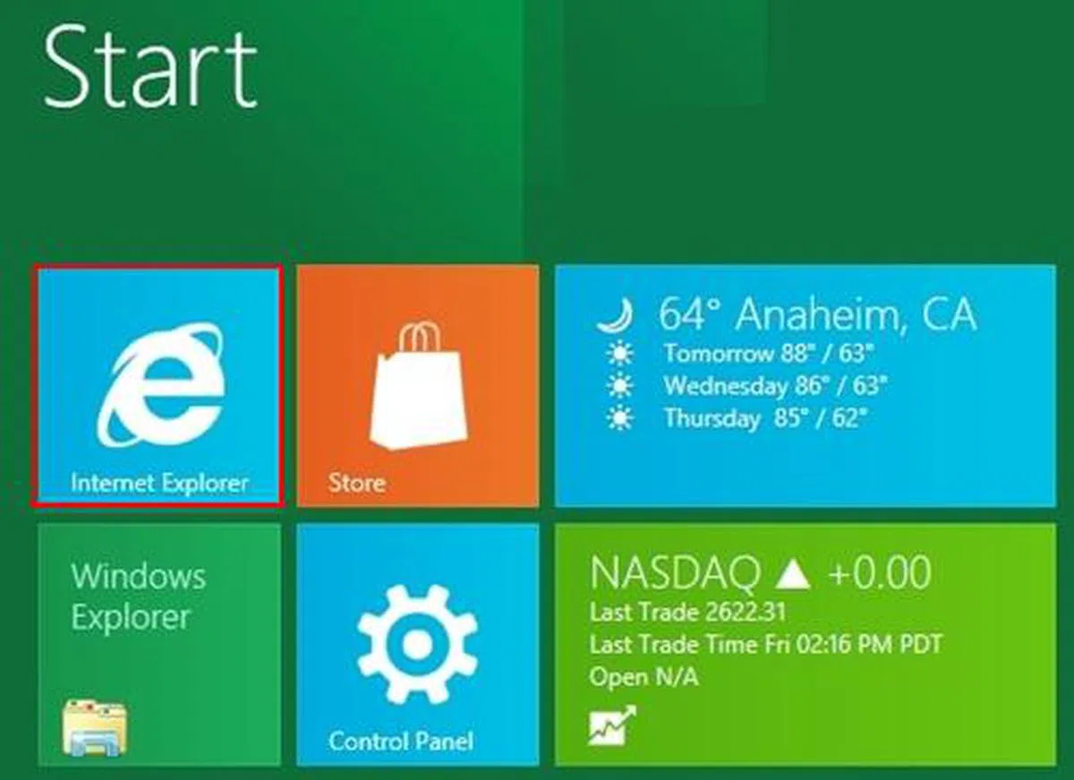When we clicked on the Internet Explorer tile, it launched the mobile Internet Explorer 10 (IE 10) in full screen. We navigated to YouTube and tried to view a video clip. Metro IE was stopped in its tracks with an unceremonious warning to update the Adobe Flash plug-in. We were brought to the Adobe Flash site, but Flash Player 10.3 is currently not available for this 64-bit version of Windows 8 Developer Preview.