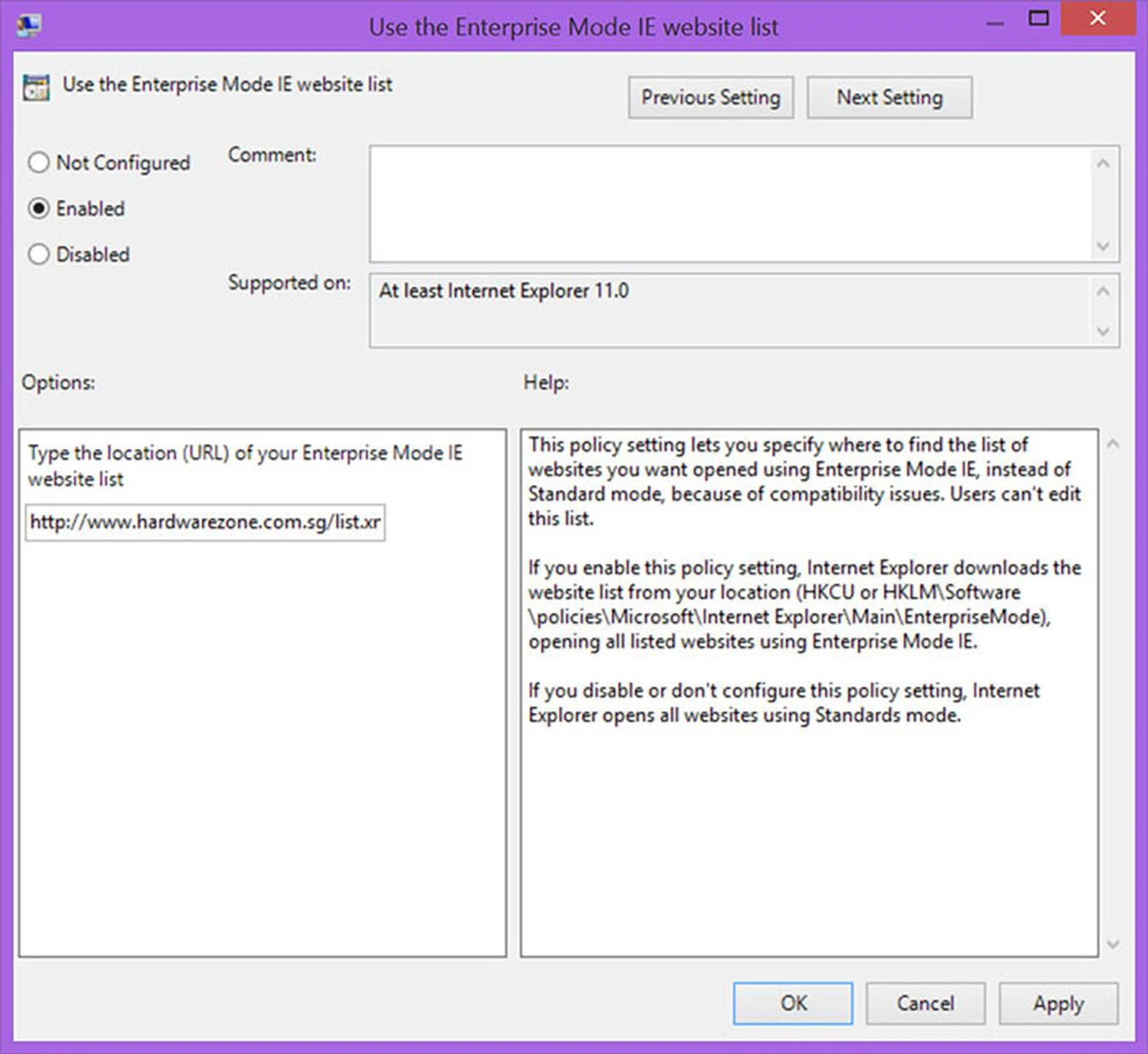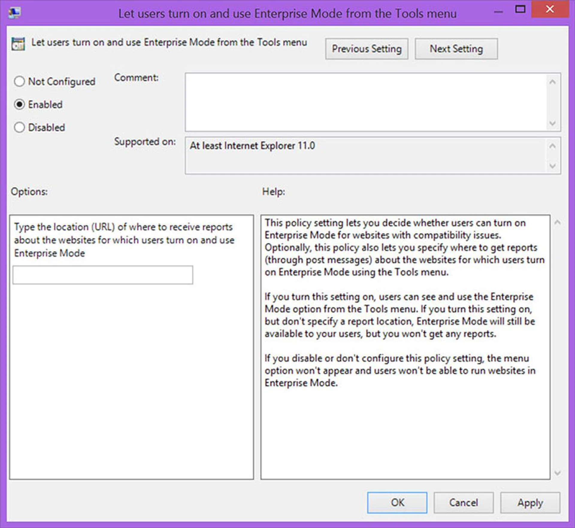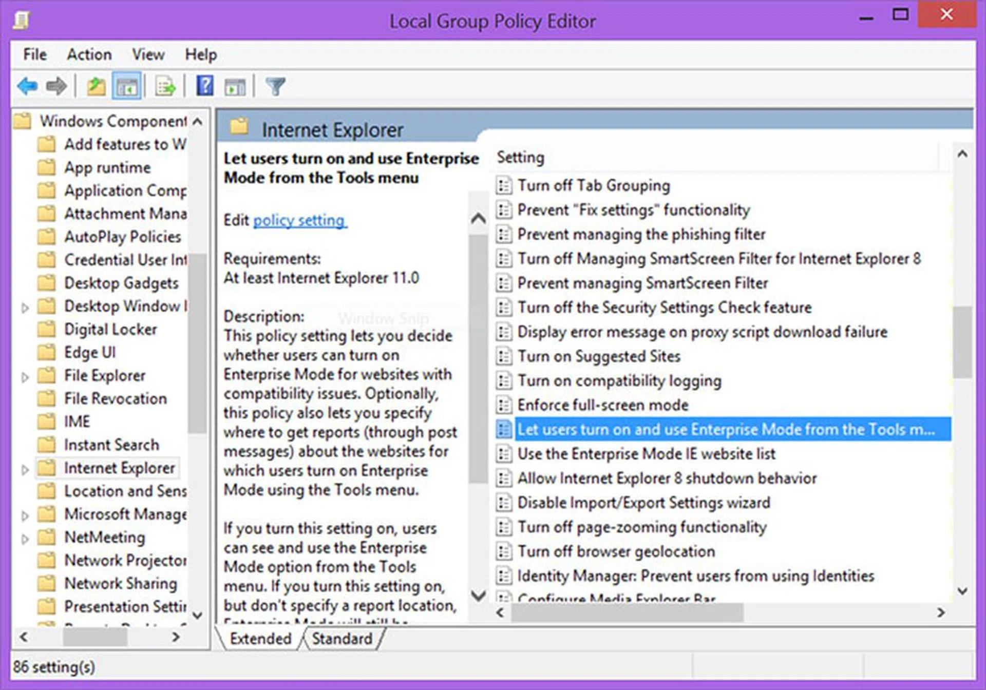 (Before we begin: Enterprise Mode for IE11 requires Professional or Enterprise versions of Windows.)
