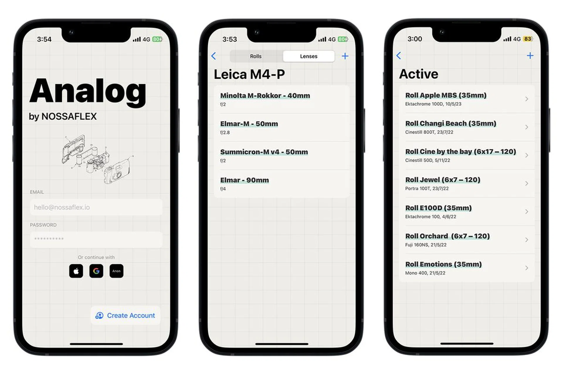 NOSSAFLEX is an iOS app designed to enhance the workflow for analog photographers by allowing users to log shot settings. PHOTO: DON CHIA
