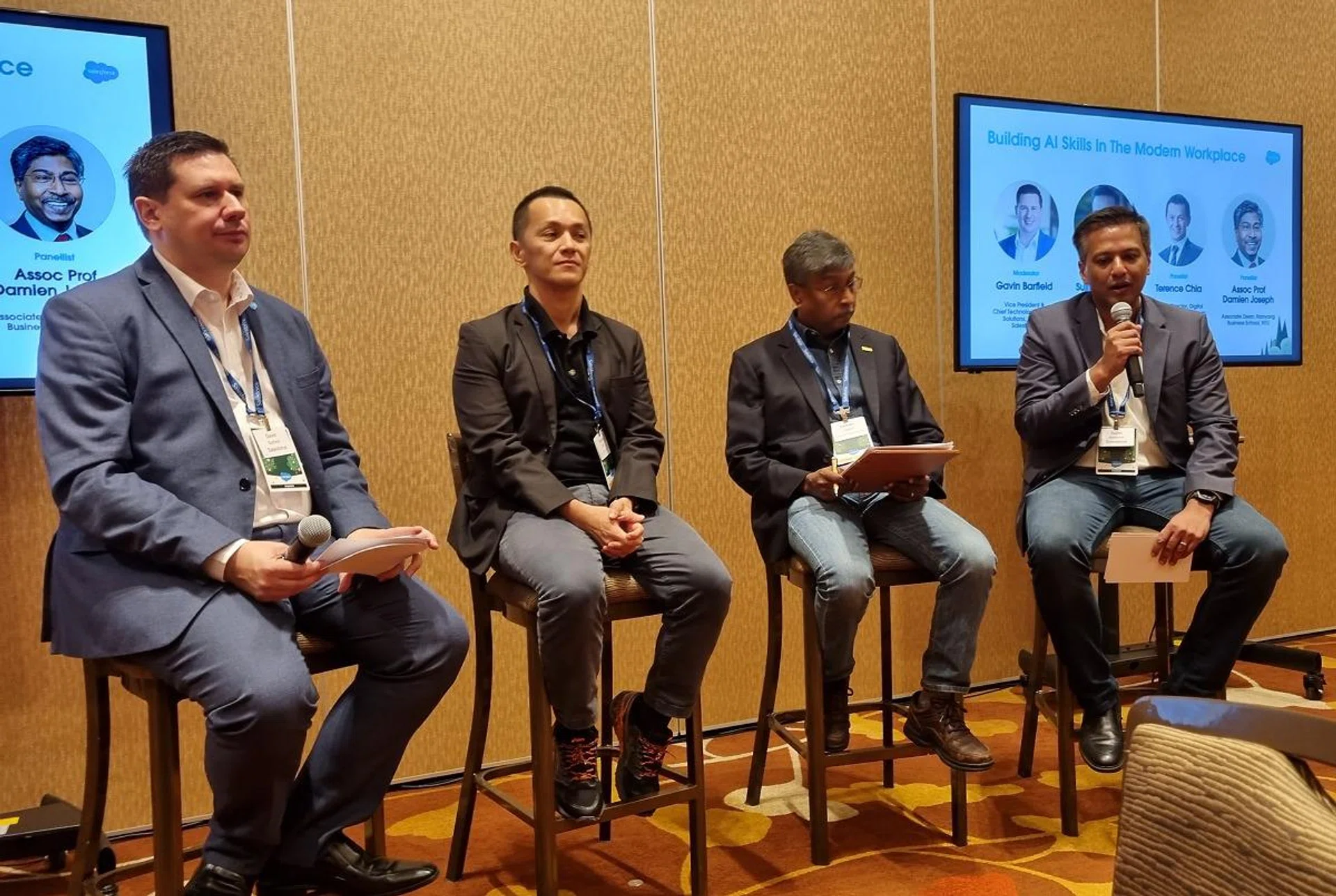 Earlier this month at Marina Bay Sands, Salesforce put on their World Tour Essentials event. It held an interesting panel discussion with local dignitaries such as Terence Chia, Cluster Director for IMDA and Assoc Prof Damien Joseph, Associate Dean for Nanyang Business School at NTU, on the rise of AI and its impact on the workforce.