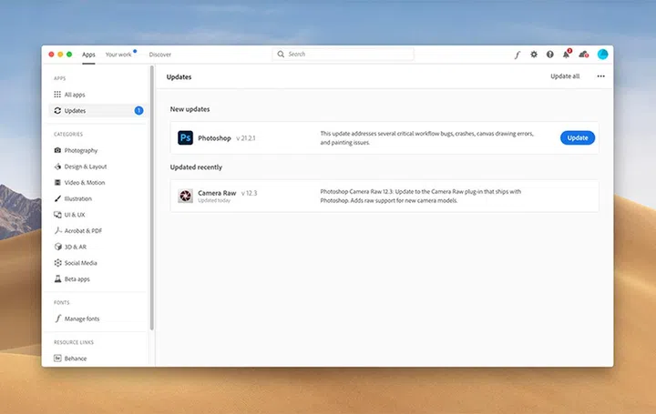 PSA: If you use Adobe Photoshop, Adobe Bridge or Adobe Prelude, it’s good to fire up the Creative Cloud desktop app and make sure you've the latest patches that Adobe released last Tue, Jul 21.