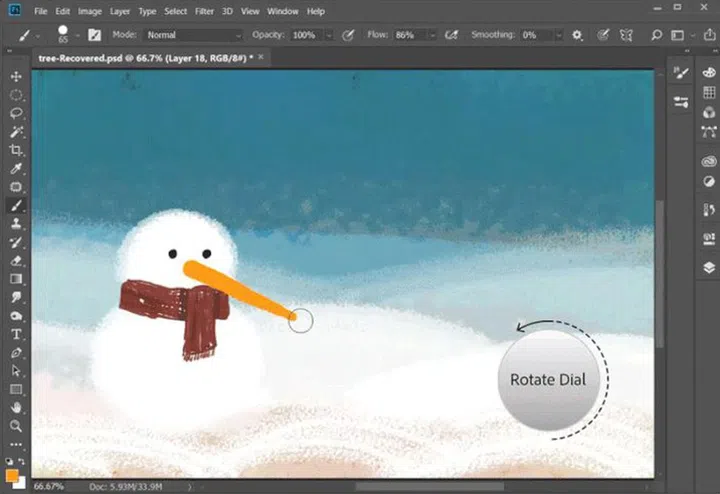 Better support for the Microsoft Surface Dial – Now you can change brush settings while you paint. You can also assign the Microsoft Surface Dial to control opacity and use that to adjust opacity while you paint. Previously, you could only change brush settings between strokes. All of the dynamic controls in the brush settings can also be assigned to the Microsoft Surface Dial now.