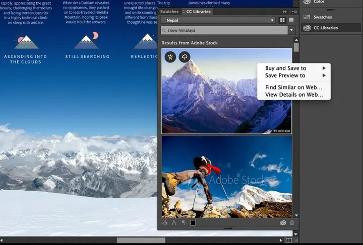 The second update include deeper integration with Creative Cloud apps through CreativeSync. Not only will you be able to search for an image directly from Creative Cloud Libraries, you can basically complete your whole workflow to preview and license an image or even video without ever leaving your working app. You will now be able to access Adobe Stock directly from Muse CC, Dreamweaver CC and Flash Professional CC, in addition to Photoshop CC, InDesign CC, Illustrator CC, Premiere Pro CC and After Effects CC.