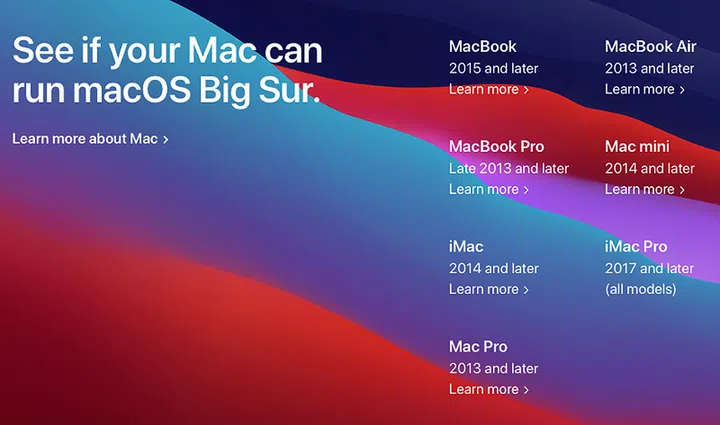 Here are the list of devices that will run macOS Big Sur: