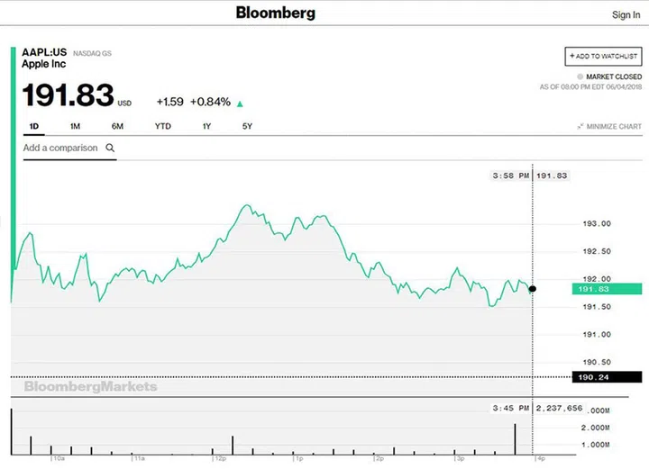 Apple’s stock closed yesterday at an all-time high of US$191.83, improving on a previous high of US$190.04 set on May 10. The stock AAPL rallied as much as 1.7% to a record intraday high before pairing gains to close at US$191.83.
