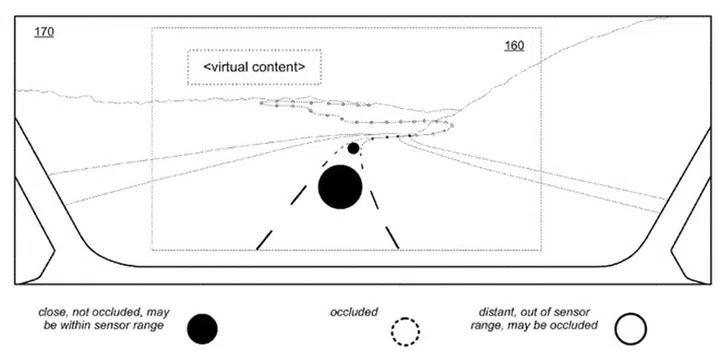 Virtual graphics could also help in cases where visibility is poor, like heavy snow or fog. Pre-existing cloud data could present a more accurate view of the route and important notifications that on-board sensors might not be able to.