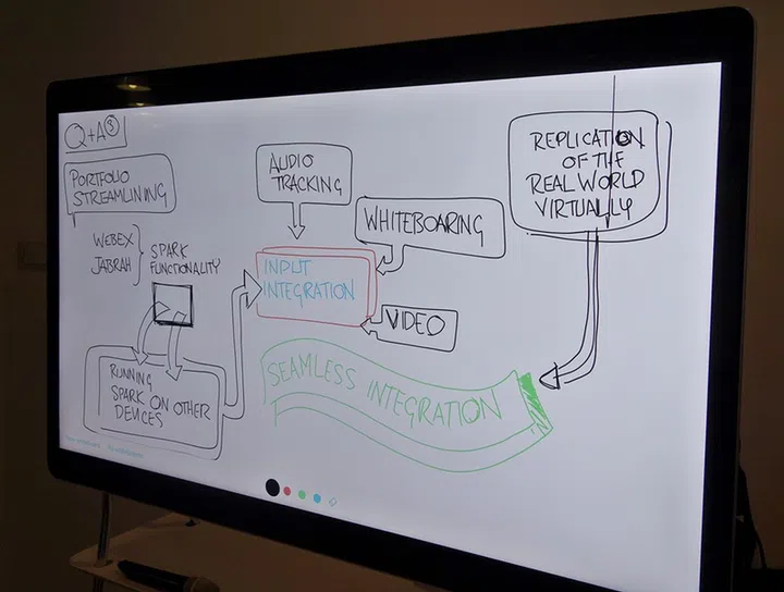 The different whiteboards that were drawn during the Cisco Spark Board demonstration.