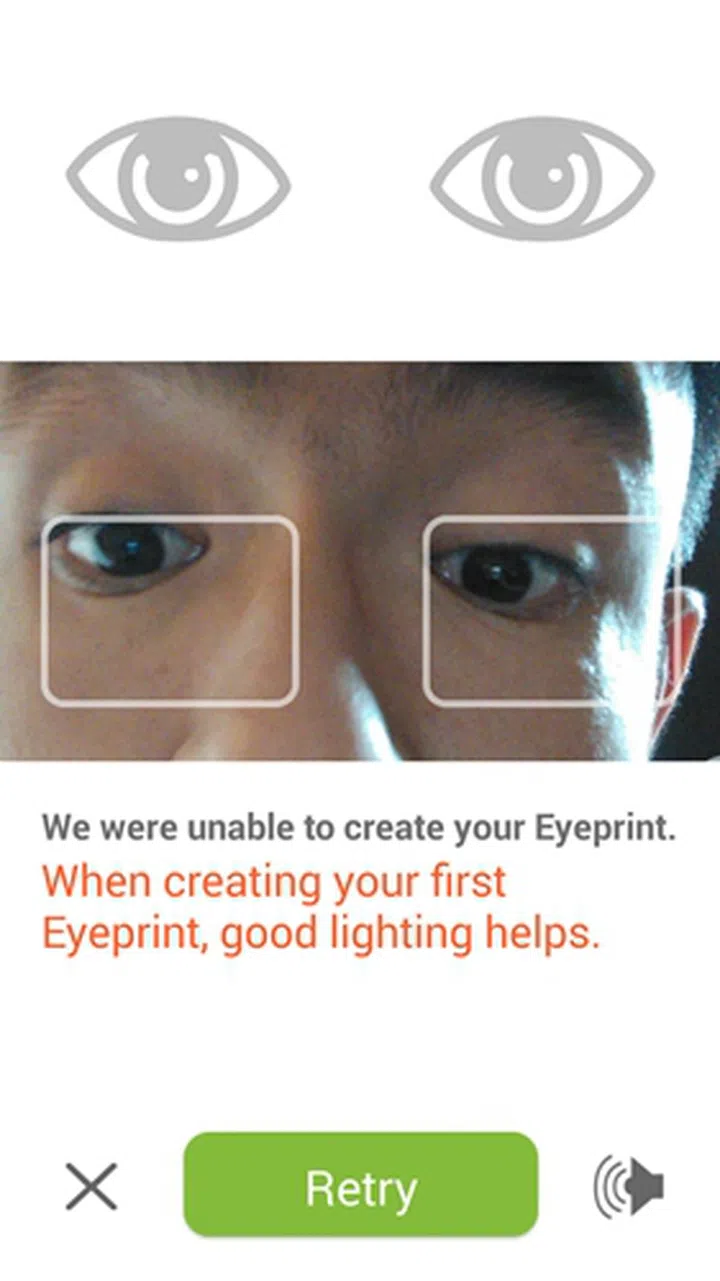 We were given a chance to try out a demo of the Eyeprint app, and the setup was straightforward. It is somewhat similar to Apple's Touch ID where you are required to repeat the entire process a few times for better accuracy. For Eyeprint, you are required to scan your eyes four times under good lighting conditions.