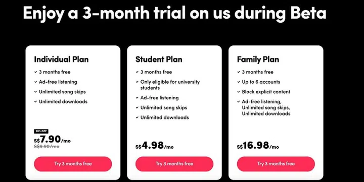 Select users from the three countries are invited to join a closed beta test where they get to enjoy a three-month trial of TikTok Music. A TikTok Music subscription is priced at S$9.90/month, and is offered at a discount for university students at S$4.98/month and family plans of up to 6 accounts at $16.98/month.