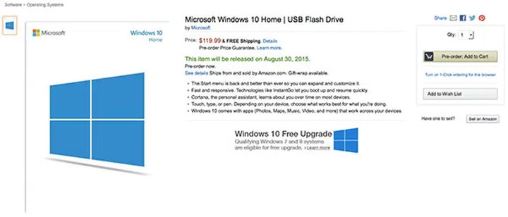 It’s an open secret that Windows 10 will be available on USB flash drives. Now, the company has confirmed it by opening up pre-orders on Amazon.