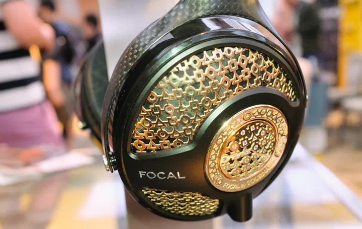 A close-up of the limited edition UTOPIA by TOURNAIRE from Focal. Yes, those are diamonds in the earcup, and the entire headphone is cast in 18 karat yellow gold.