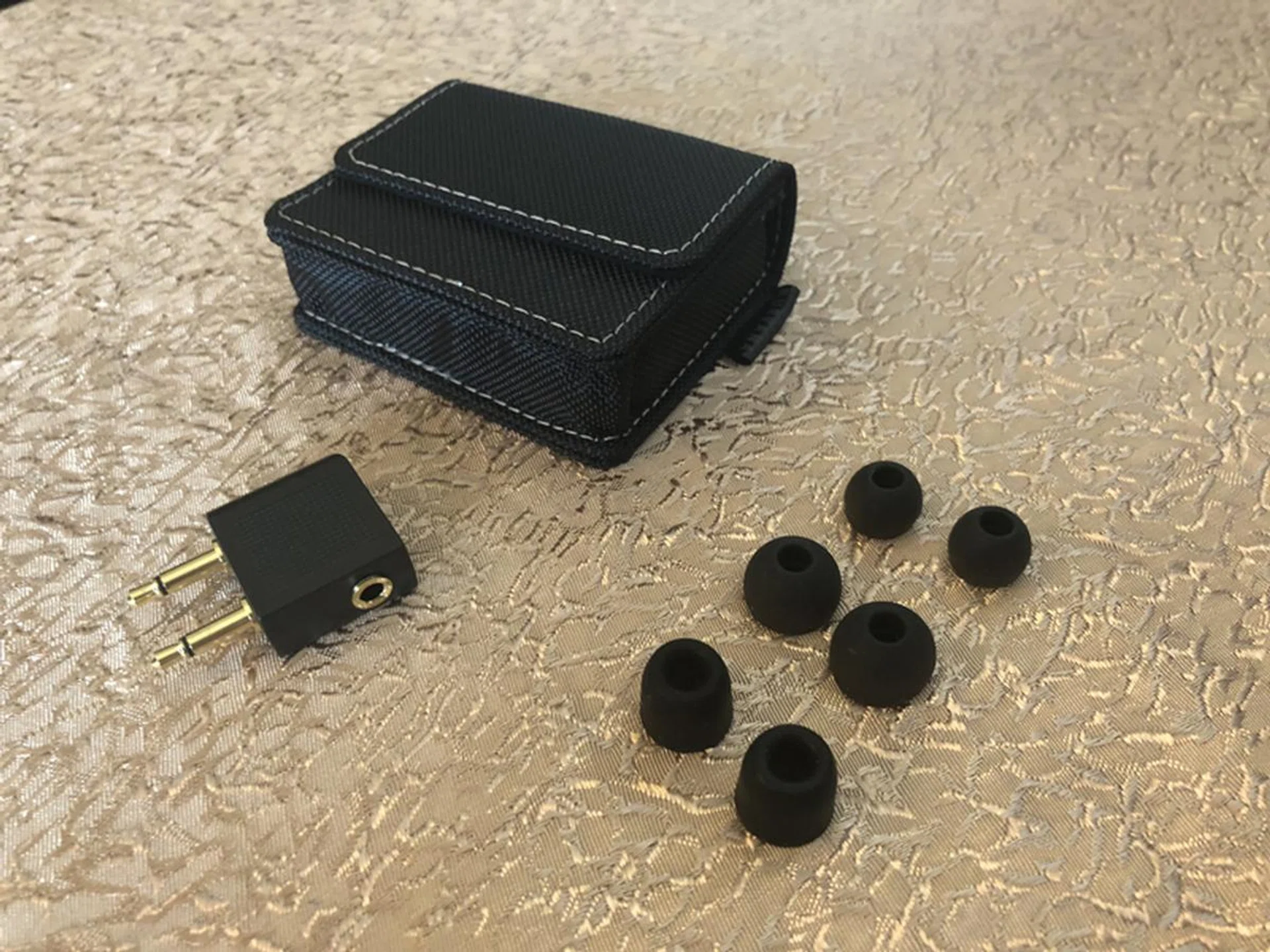 In its retail box, the Aurvana Trio comes with three pairs of differently-sized silicone ear tips, and a set of foam earbuds. There's also a hard case for the Aurvana Trio IEMs and its accessories, plus a travel adapter for airplane ports.