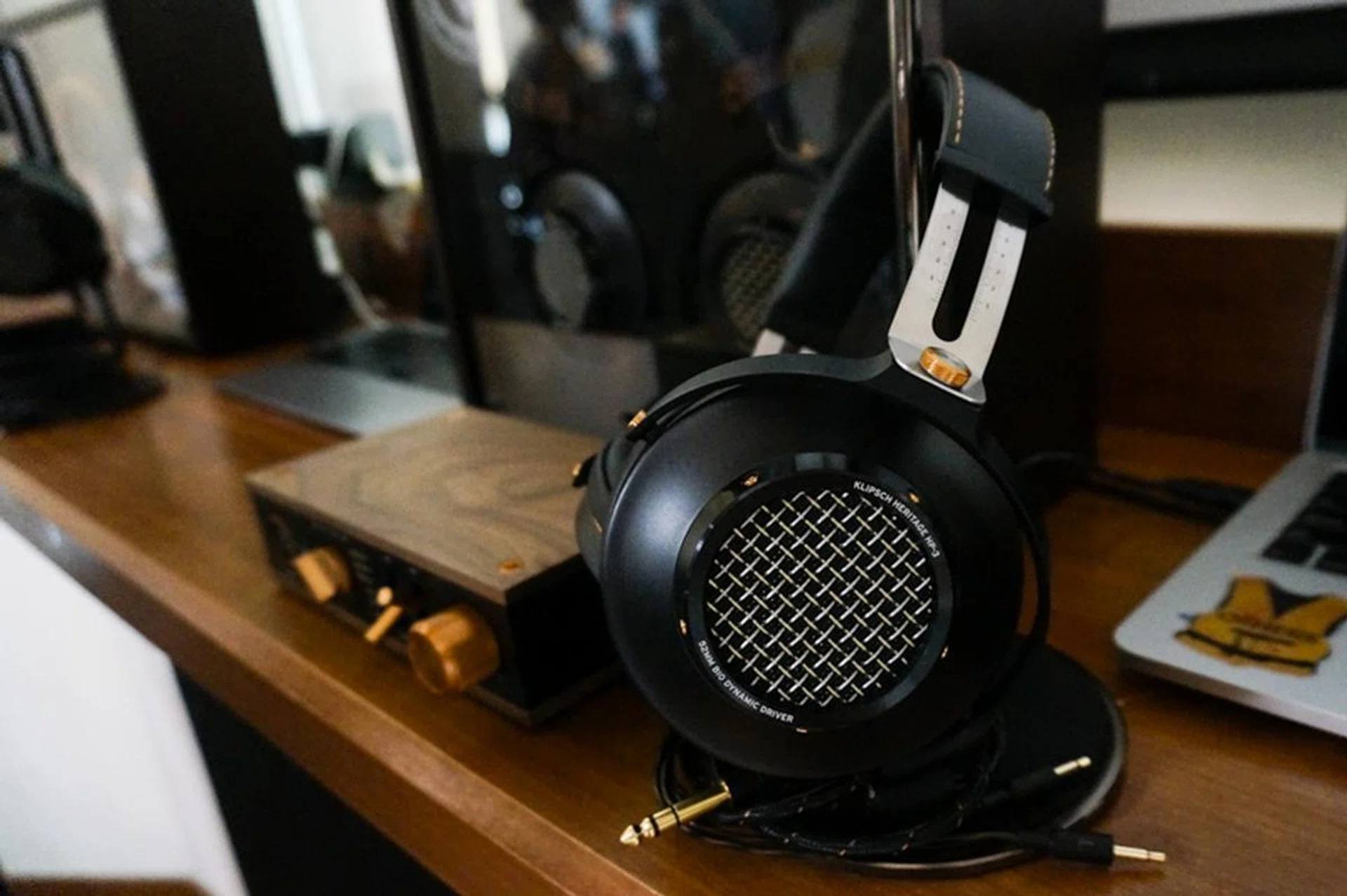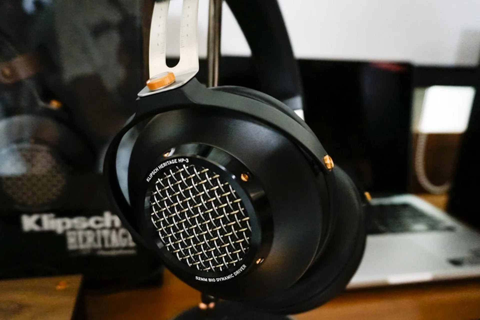 The headphones in question, are the Klipsch HP-3, which is a semi-open over-ear set of headphones that uses free-edge 52mm biodynamic drivers for accurate, natural sound. We were told that these were designed with speakers as a reference point, and that the Biocellulose material used for the drivers gives a great response because it’s just 1/5000 the thickness of a human hair. Sounds reminiscent of the excellent Focal Utopia headphones we reviewed last year, so we were definitely looking forward to getting some quick audio testing time.