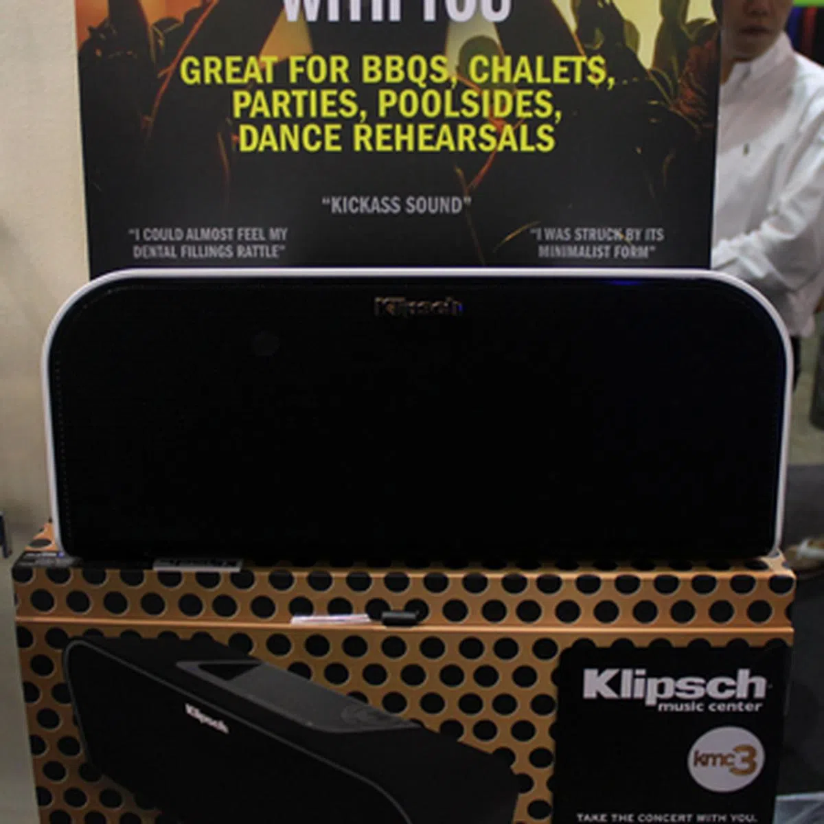 Location Hall 6, Booth 6020 | Klipsch KMC3 Bluetooth Speakers Those looking for larger sound from their Bluetooth speaker should check out the Klipsch KMC3.Bi-Amplified for audiophile resolution, the speakers have two 15W full range drivers and a 35W sub-woofer for 130W system peak power.PC Show 2013 Offer
