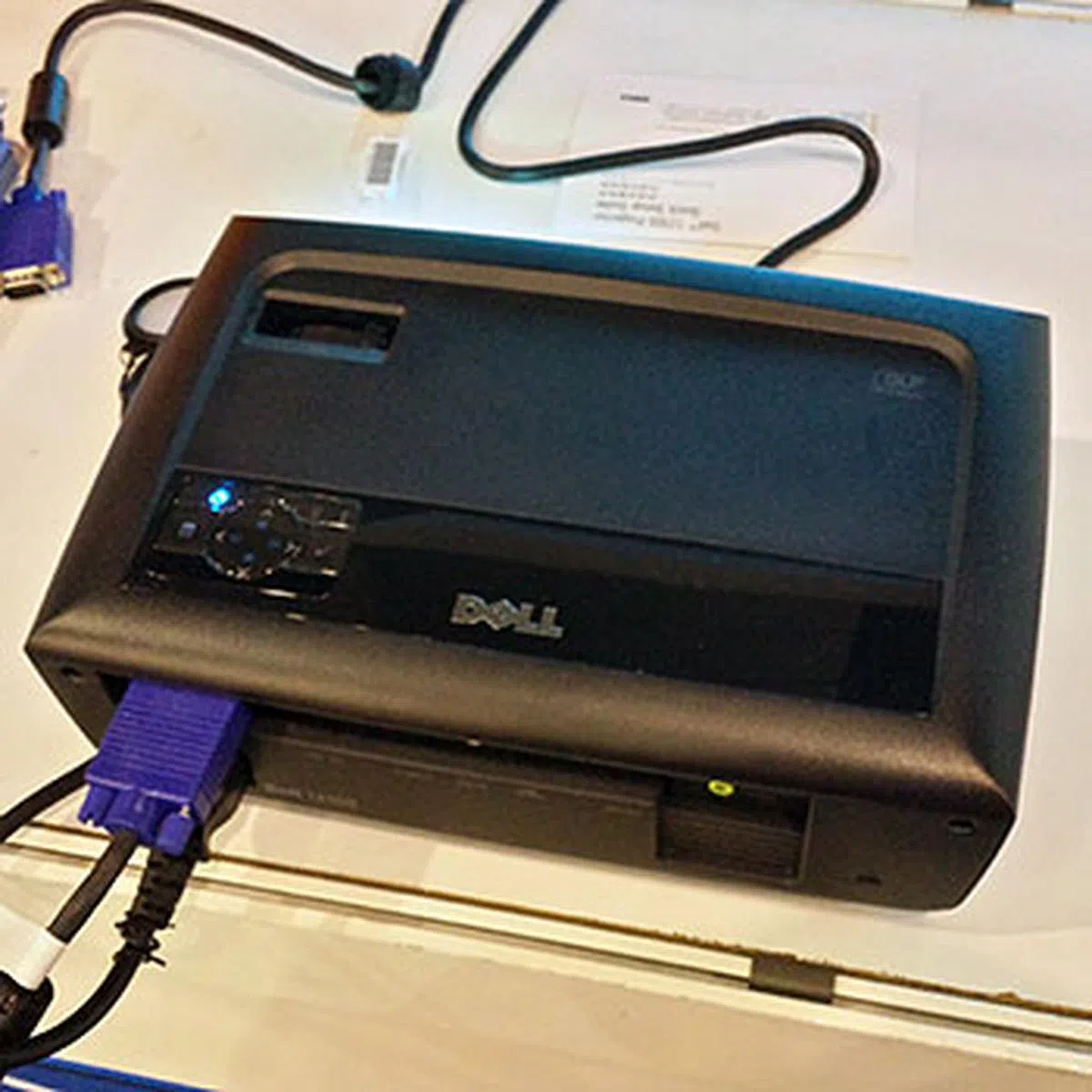 | Dell 1210S The 1210S is a DLP projector with an modest SVGA (800 x 600) resolution. Still, this 2.4kg beamer touts 2,500 lumens of brightness, 2,200:1 contrast ratio, and up to 4,000 hours of lamp life. If your projection needs are simple, give this a look. The 1210S comes with a 2-year advanced exchange and 3-month bulb warranty.PC Show 2013 Offer