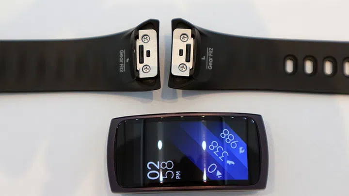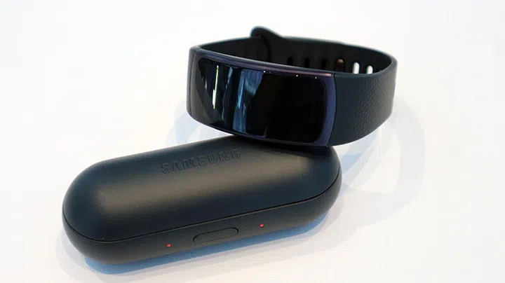 Here are the Samsung Gear Fit2 fitness tracker and Samsung Gear IconX up close.