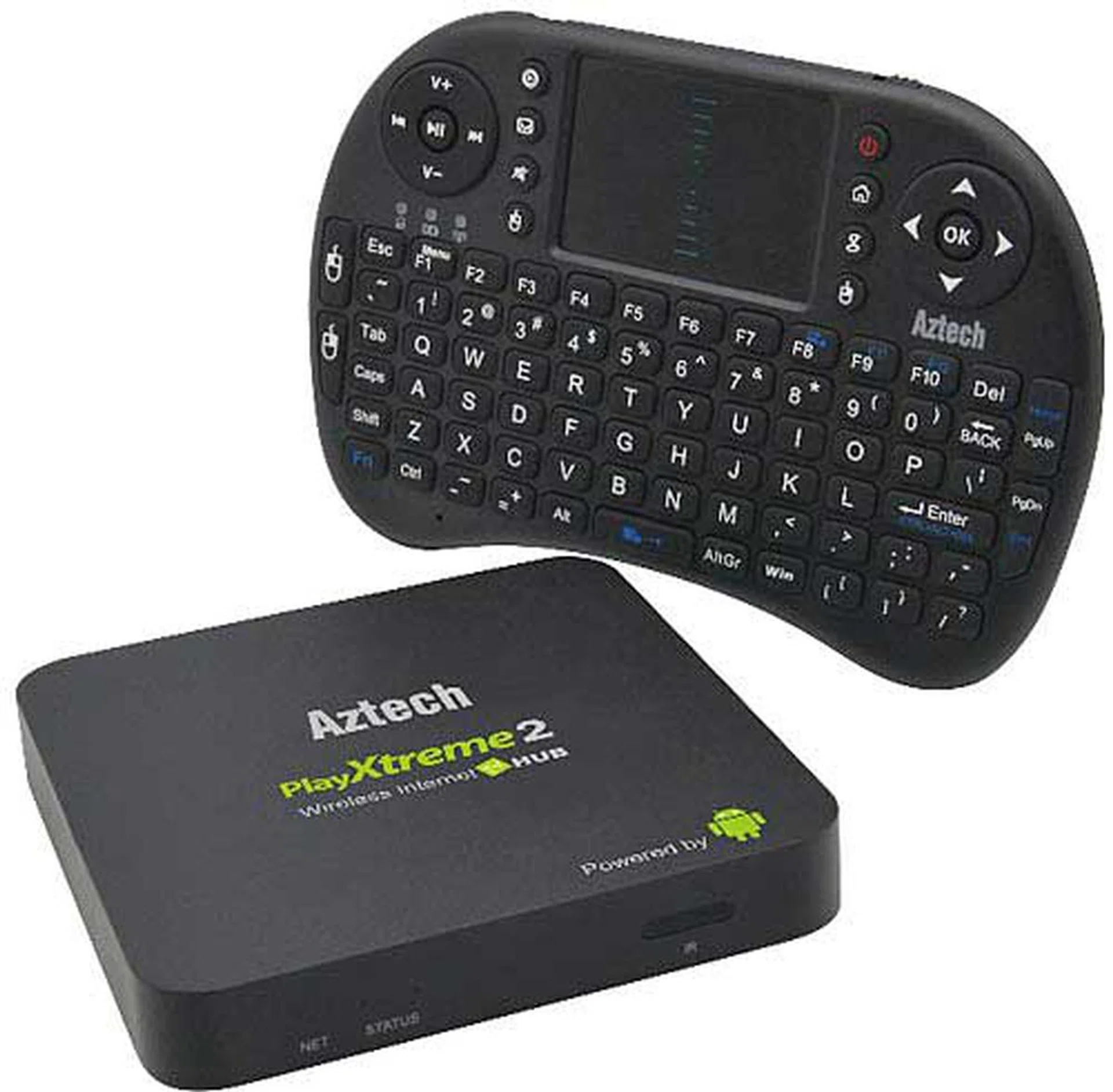 Powered by Android 4.0 (Ice Cream Sandwich), the PlayXtreme 2 turns your TV into a Internet-enable smart TV. It's also a media player that streams from an external USB drive, microSD card or a NAS device. It supports HDMI 1.3, resolutions up to 1080p, HTML5, and Flash. With Google Play store and 1Mobile Market, there's no lacking of apps to expand its functionality. The PlayXtreme 2 comes with a wireless QWERTY touchpad remote control.