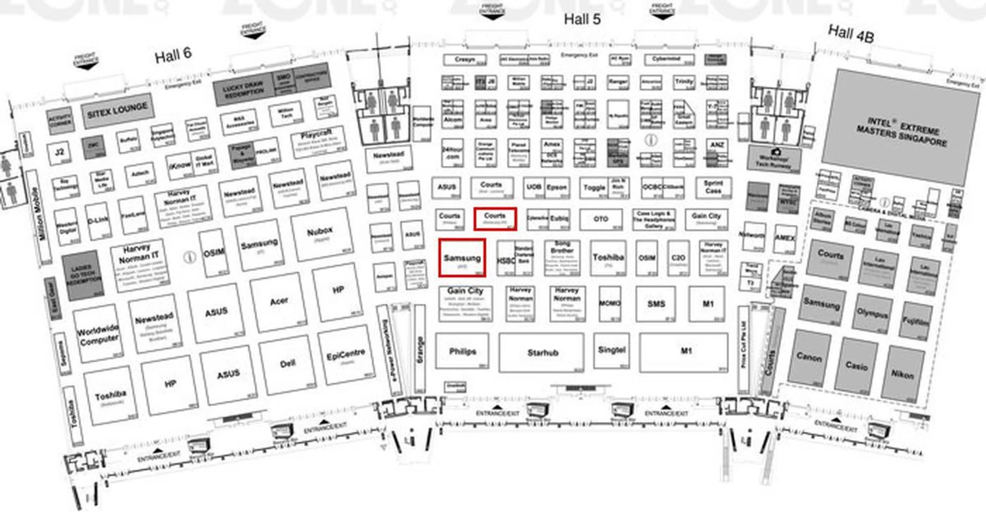 Samsung (Hall 5, Gain City - Booth 5B20, and Courts - Booth 5C30)