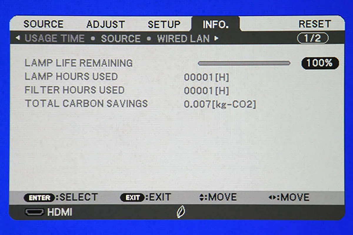 By default, the projector remembers the last video input source used, and attempts to use it again the next time. If it can’t detect the signal from the terminal it thinks you’re using, a message will appear on the screen asking you to check the connection. If you’re using a different input, what you need to do is to hit the Source button once for the projector to cycle through the inputs to detect the signal automatically. Expectedly, this default-to-last-used-input behavior is ideal if everyone is using the same connection to hook up to the projector (say, VGA out from a laptop). But if you’re always switching sources, we recommend going into the menu and change the 'Default Source Select' setting to 'Auto'. This tells the projector to search for an active input and display the first signal it finds.