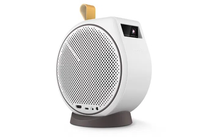 The BenQ GV30 features a rounded design with a handle for simple carrying and can throw out a 100-inch 720p image at a brightness of 300 lumens. Not that bright, but a Day Time Mode that boosts the contrast when there’s bright ambient lighting could help here. Focusing is helped with a 135-degree projection angle achieved by tipping the projector up and down on its stand.