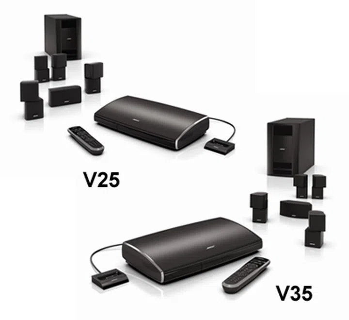 The new Bose Lifestyle V25 and V35 systems will feature exclusive Bose audio technologies designed to deliver vivid, entertainment-like surround sound from five small speaker arrays and a hideaway Acoustimass module.