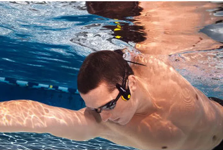 The Neptune SwimP3 is Finis' latest waterproof MP3 player that does not require ear buds as it uses bone conduction to make the user feel as if the music is playing inside their head.
