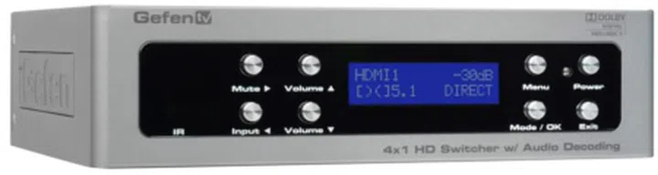 Award Winning GefenTV 4x1 HD Switcher w/Audio Decoding Switches Four HDMI Sources and Delivers Multi-Channel Audio as 5.1 Surround Sound
