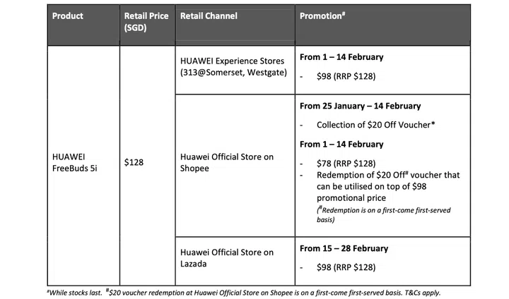 While it has a recommended retail price of S$128, customers can enjoy an “early bird” discount of S$20 from 1 to 14 February from the Huawei Experience Stores and Shopee. But Shopee customers can pick up a S$20 off voucher and save an additional S$20 by paying only S$78.