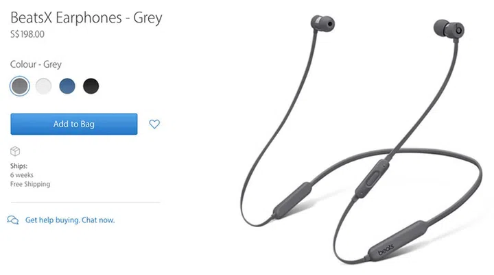 After much delay, the BeatsX earphones are finally available for order on Apple Singapore's online store. Four colors are available: black, white, gray, and blue.