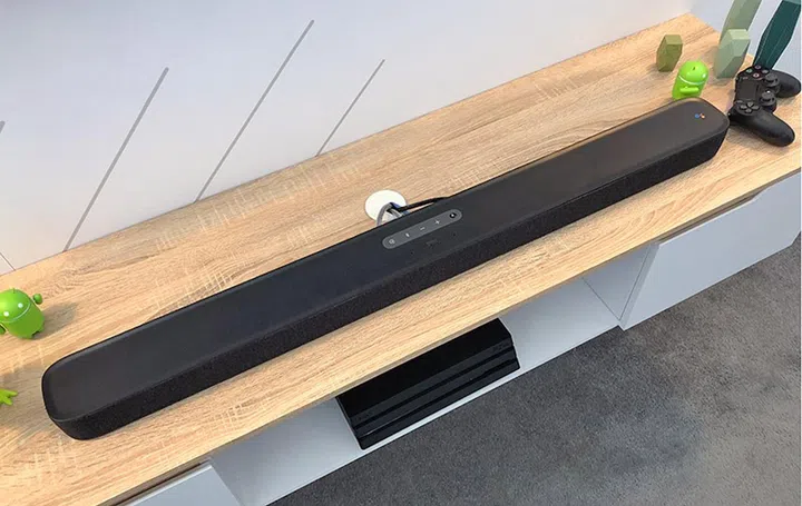 Thanks to Assistant integration, you can yell at the soundbar to control media playback and smart home devices. And non-video-related functionality, such as music control and home automation, can be done even when the TV is off. The 100W soundbar is capable of HDMI switching, and as you’d expect, you can easily switch inputs via voice (there are mics on both the soundbar and its remote). You can also connect the soundbar to an optional wireless subwoofer.