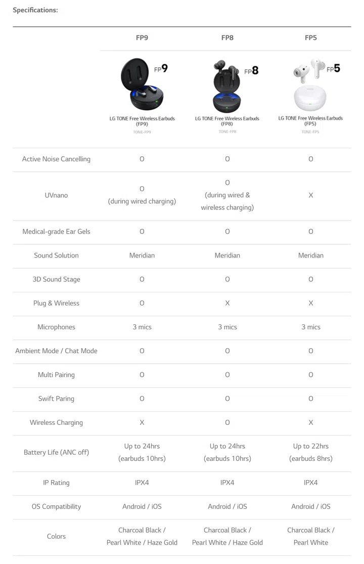 Today, LG is launching its 2021 Tone Free FP series earbuds. They are the FP9, FP8, and FP5.