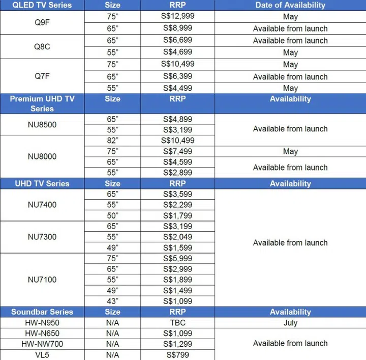 Here are the prices and availability of the entire 2018 QLED, Premium UHD, UHD and Audio products: