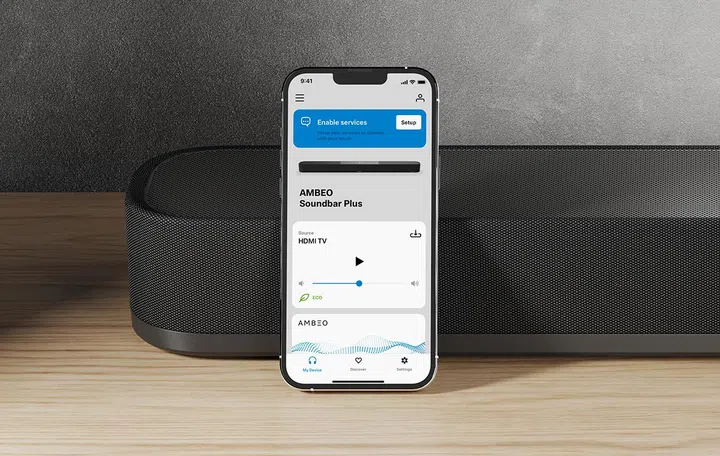 An Internet connection to the Ambeo Soundbar Plus matters because of Sennheiser’s proprietary Smart Control app, which houses its customisation and controls all in one place. That said, you can still control the soundbar with its included remote control. Like its predecessor, the Ambeo logo lights up when triggered.