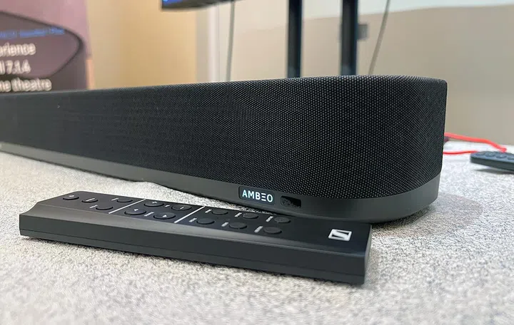 What sets Senneheiser’s 400W plus-sized soundbar aside is its proprietary Ambeo tuning, which can be toggled on independently from the bar’s built-in Dolby Atmos support. Ambeo offers virtualised 3D surround sound. Instead of brute-forcing all its speakers to create virtual surround sound above and beside you, Ambeo generates “artificial speakers” around the listener by reading the room’s acoustic properties (which takes up to 10 minutes for calibration). It uses its reflective properties and proceeds to project up to 11 virtual speakers around the user for a mind-bending, immersive audio experience.